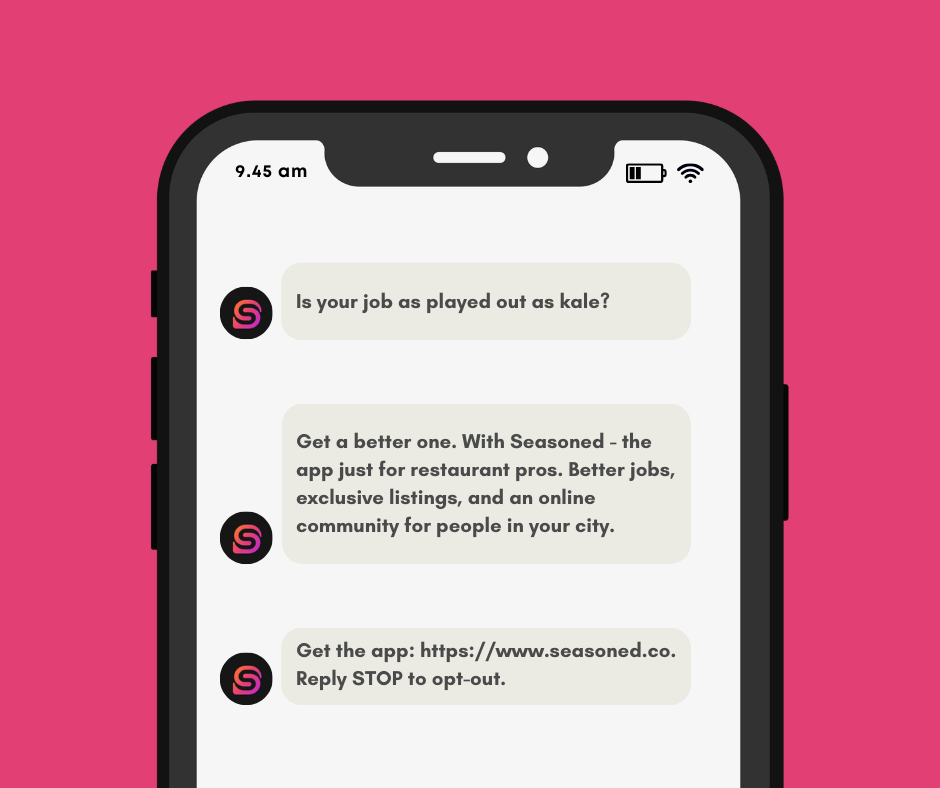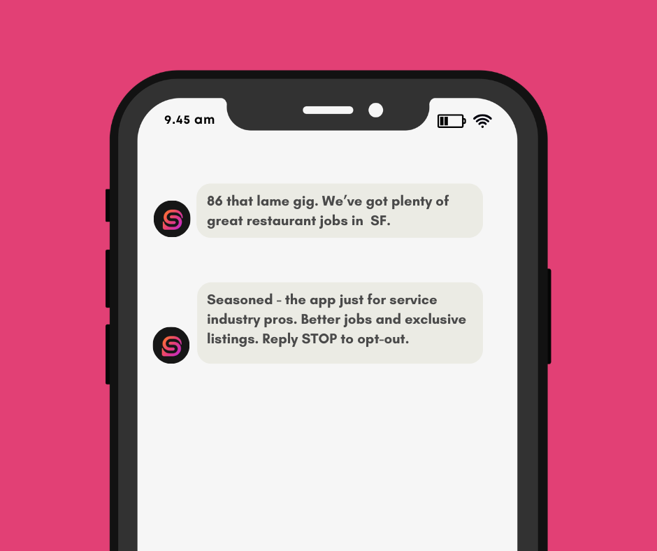 SMS, restaurant signage, display, and in-app copy.